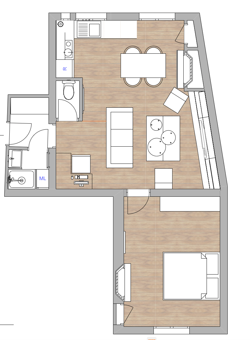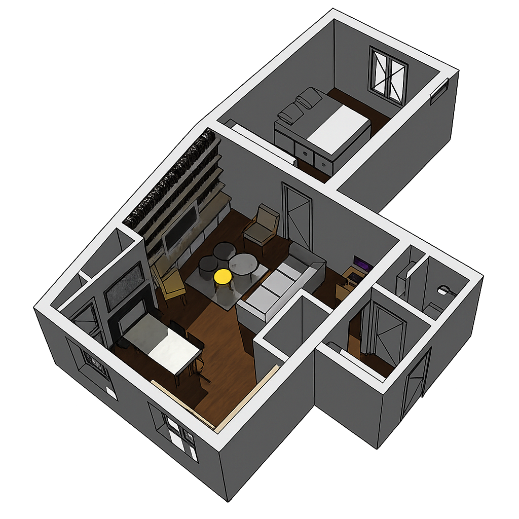 L’enjeu était clair : révéler les qualités intrinsèques de l’appartement en travaillant sur les volumes, la circulation et la lumière. À travers une série de plans, d’axonométries et de visuels 3D, j’ai proposé plusieurs scénarios d’aménagement, pensés pour optimiser l’espace tout en s’adaptant à leur mode de vie.
